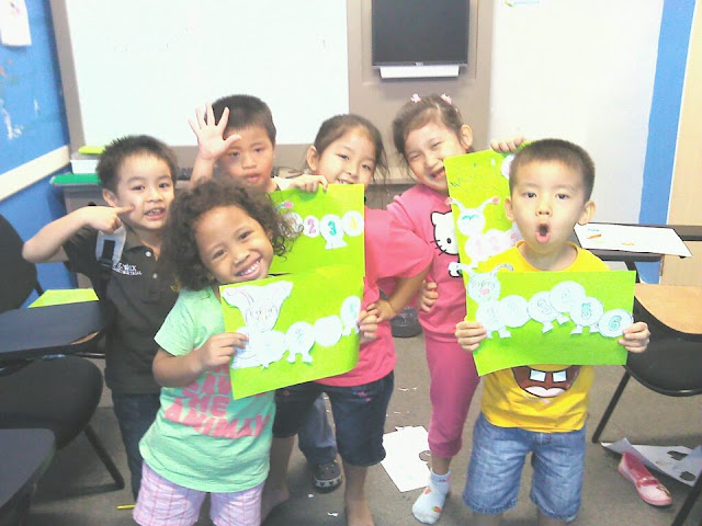 Oh yeah forgot to tell you that I asked my second class to make a paper craft, an easy one for sure. the craft was something related to numbers. I came up with a template of a caterpillar which was in cut out pieces, therefore my students needed to color the template of the big circles that could be formed like a caterpillar with numbers on it.